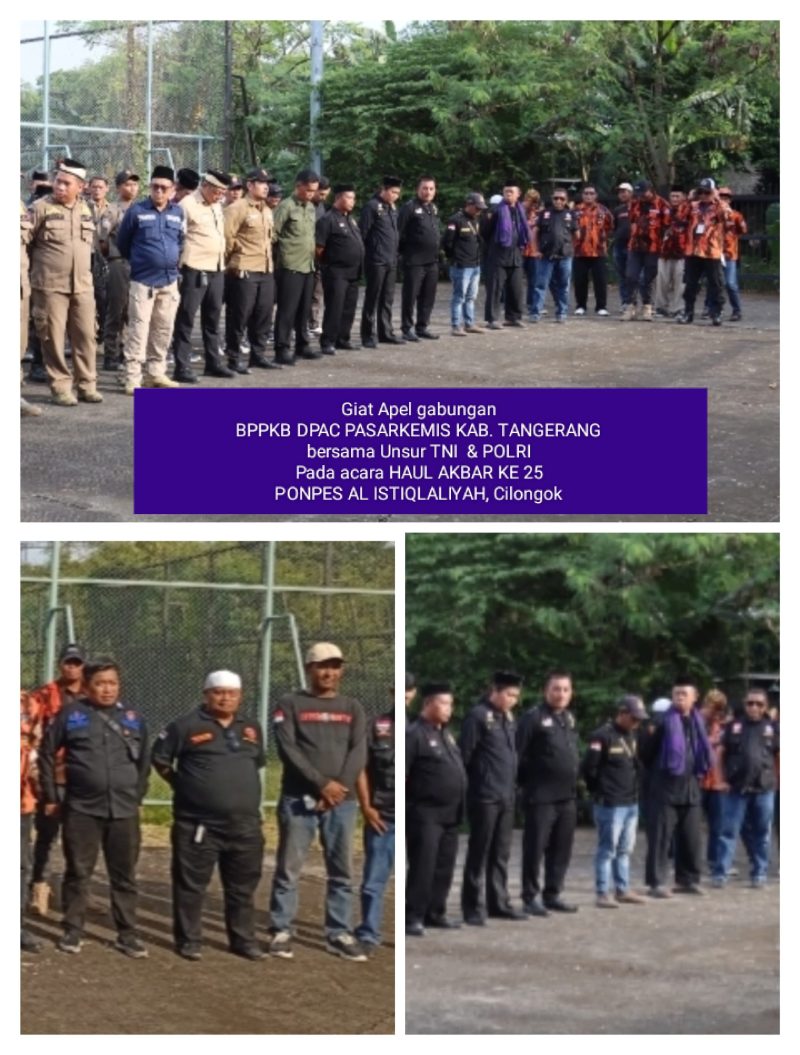 Faktamerah, TANGERANG – BPPKB DPAC Pasar Kemis Kabupaten Tangerang ikut mensukseskan dan mengamankan Haul Akbar Abah Sepuh KH. Dimyati Bin KH. Romli dan Haul Al-Maghfurlah Abuya KH. Uci Turtusi Bin KH. Dimyati di Ponpes Al-Istiqlaliyyah Cilongok, Sabtu (28/03/2025).