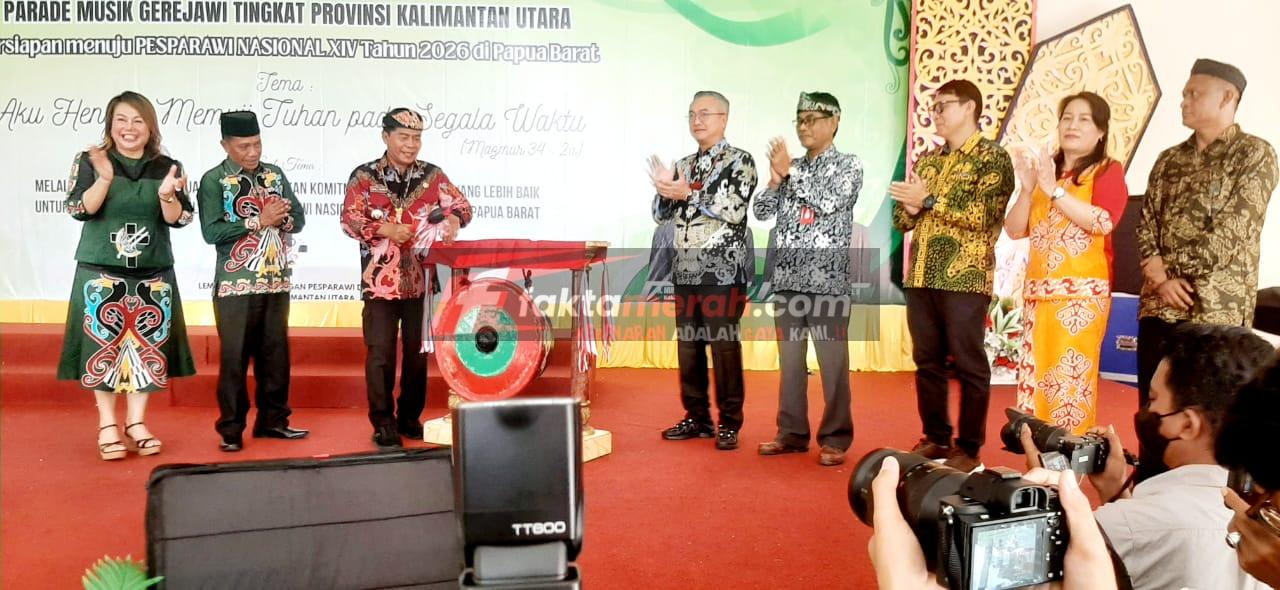 TARAKAN, faktamerah.com — Parade Musik Gerejawi Tingkat Provinsi Kalimantan Utara (Kaltara) resmi dibuka oleh Gubernur Dr. H. Zainal Arifin Paliwang, SH, M.Hum, melalui penabuhan gong di Gedung Kristen Center, Jalan Akibala, Kota Tarakan, Selasa (25/11/2025) sore.