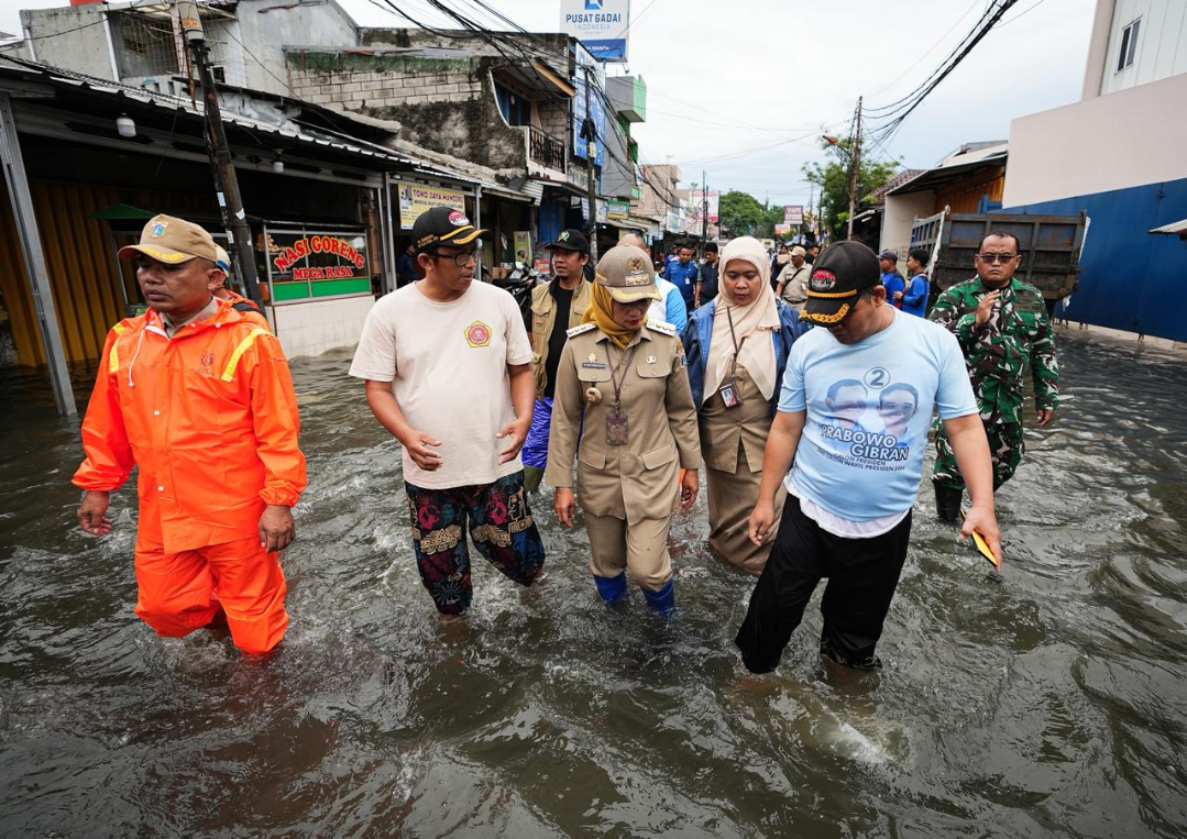 Didampingi jajaran Organisasi Perangkat Daerah (OPD) terkait, Iin meninjau sejumlah titik terdampak banjir yang dipicu hujan dengan intensitas tinggi dan durasi cukup lama. Kondisi tersebut diperparah dengan meningkatnya debit air Kali Mookervart yang meluap ke permukiman warga.