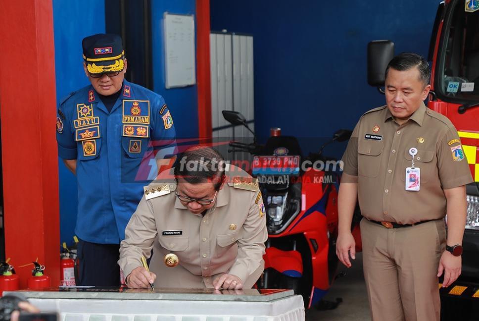 Gubernur DKI Jakarta, Pramono Anung meresmikan Pos Pemadam Kebakaran (Damkar) Kebayoran Lama Utara, Kebayoran Lama, Jakarta Selatan, Senin (13/10/2025).