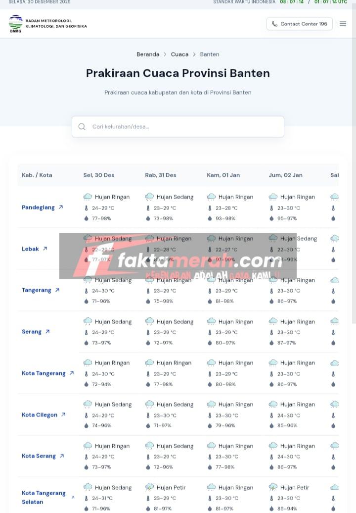 SERANG | FAKTAMERAH.COM – Polda Banten mengeluarkan imbauan kewaspadaan menyusul pembaruan prakiraan cuaca dari BMKG Banten yang memprediksi potensi hujan sedang hingga lebat disertai…